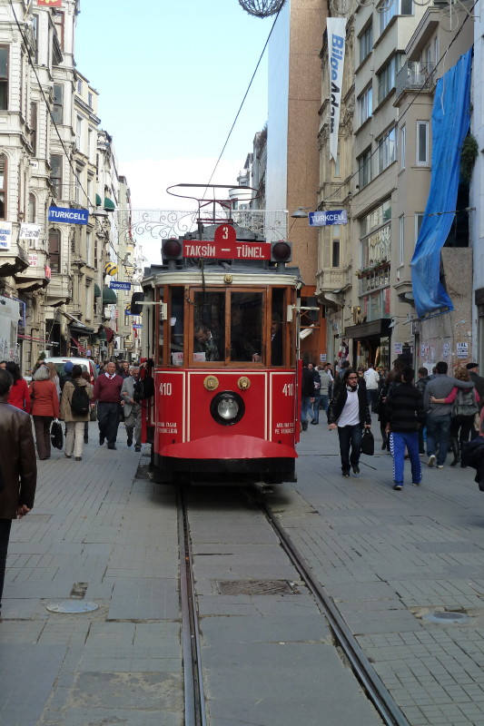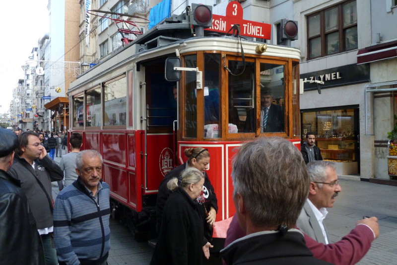 Raitiovaunu yhdisti Tünelin köysiradan pääteaseman ja Taksim-aukion