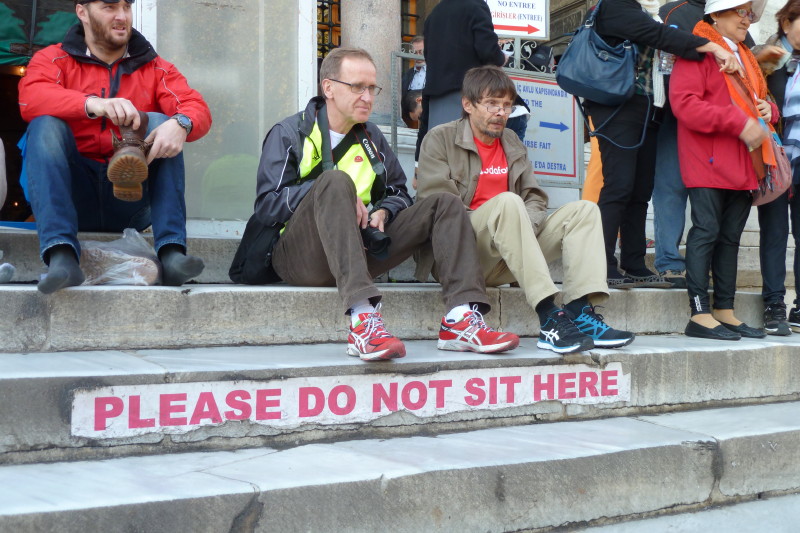 Istumakieltoa portailla ei nähnyt, kun ulos tultiin portaita alaspäin