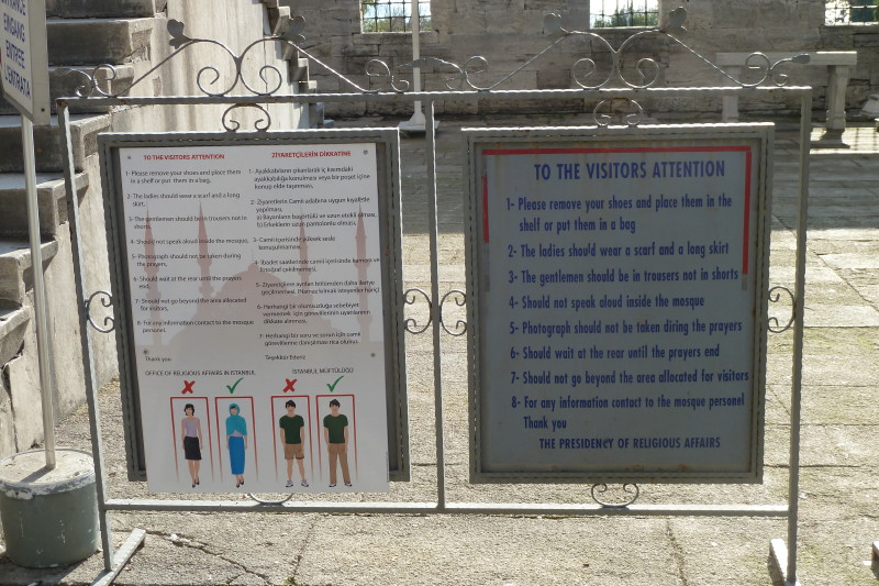 Käytössäännöt moskeijavierailuun, mm. kengät oli riisuttava
