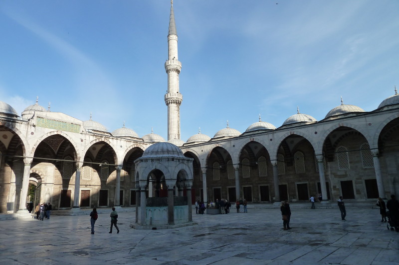 Sinisen moskeijan (Sultanahmet Camii) sisäpihalla